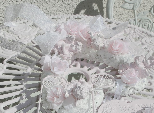 オブジェとともに飾りたい、楽団天使のハートレースリース&バラと天使のハートウェルカム・プレート☆彡