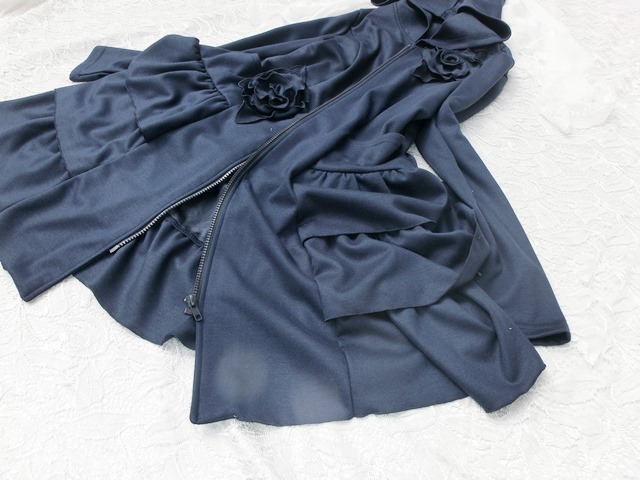 "ライト・ネイビー ローズモティーフ&ティアードスタイルフードコート"