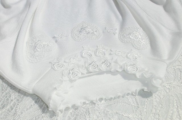 *組成の「レース レーヨン・綿」というのは首元・胸元のバラのモティーフのことです。