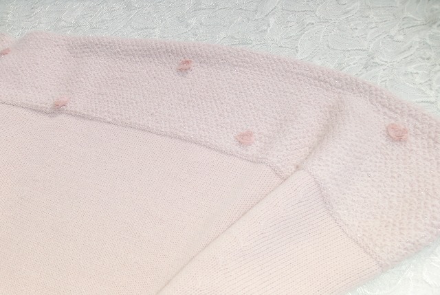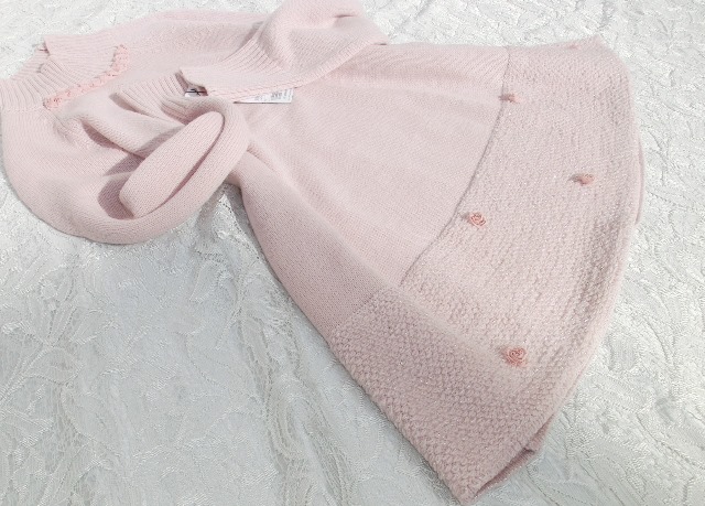 同色のローズチュールモティーフを首元とツイード裾のアクセントに、それはそれは可憐に映えます。