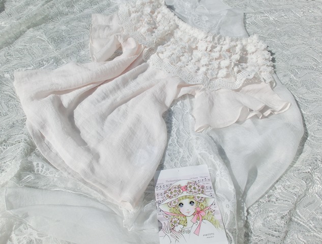ケープのようにふわっとあしらわれ、着用するとお顔が白いお花に包まれたみたいに。